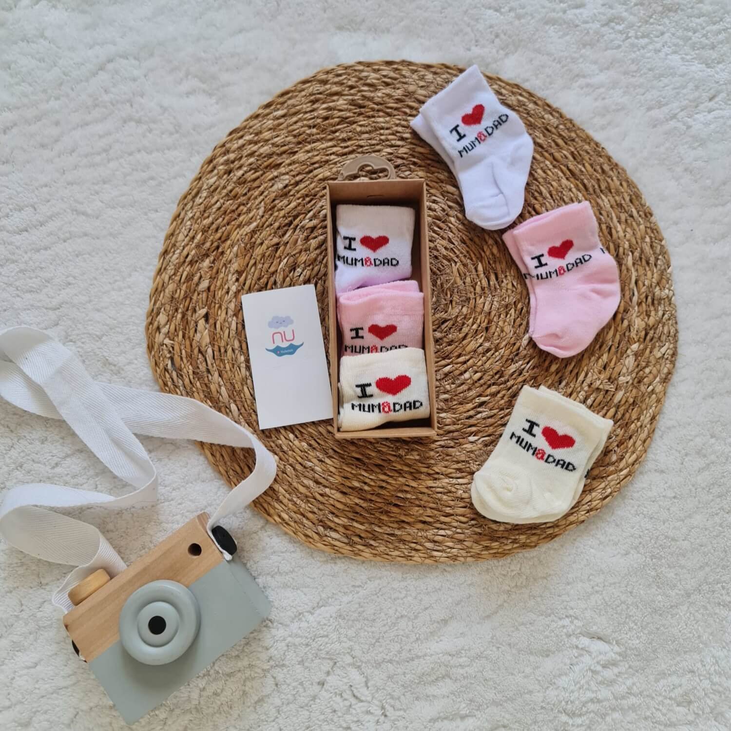 • Özel Yazılı Tasarım: Her çorapta bulunan “I ❤️ Mum & Dad” işlemesi, bebeğinize çok tatlı bir hava katar.