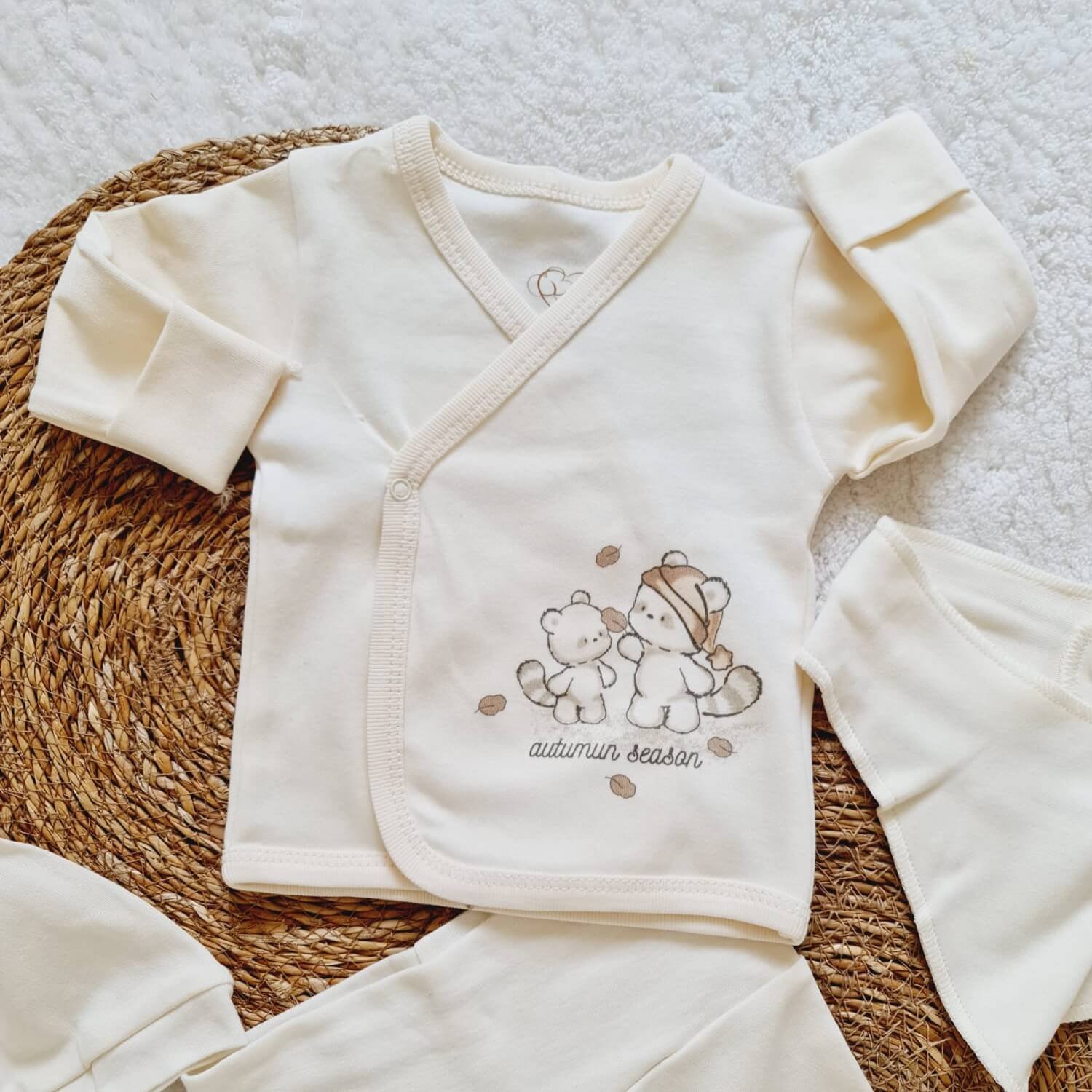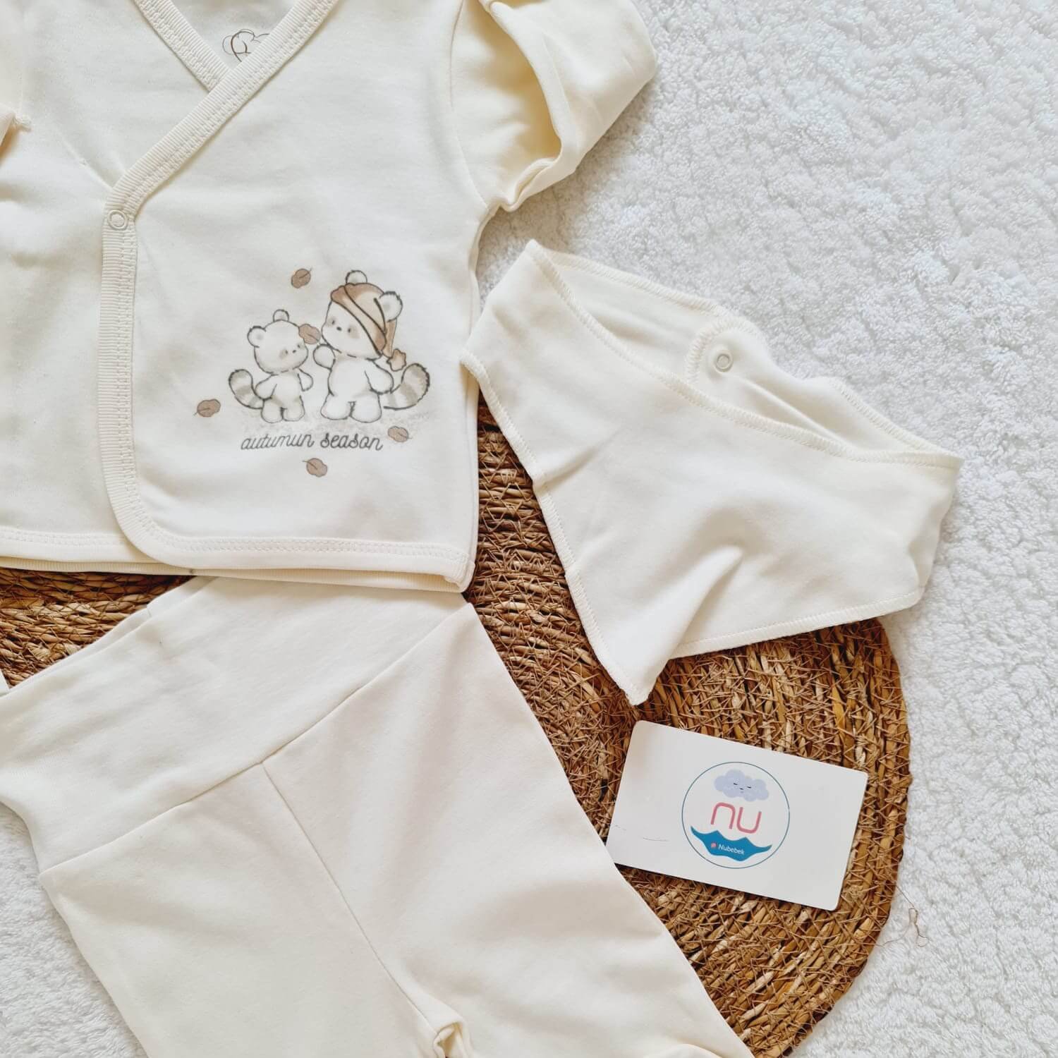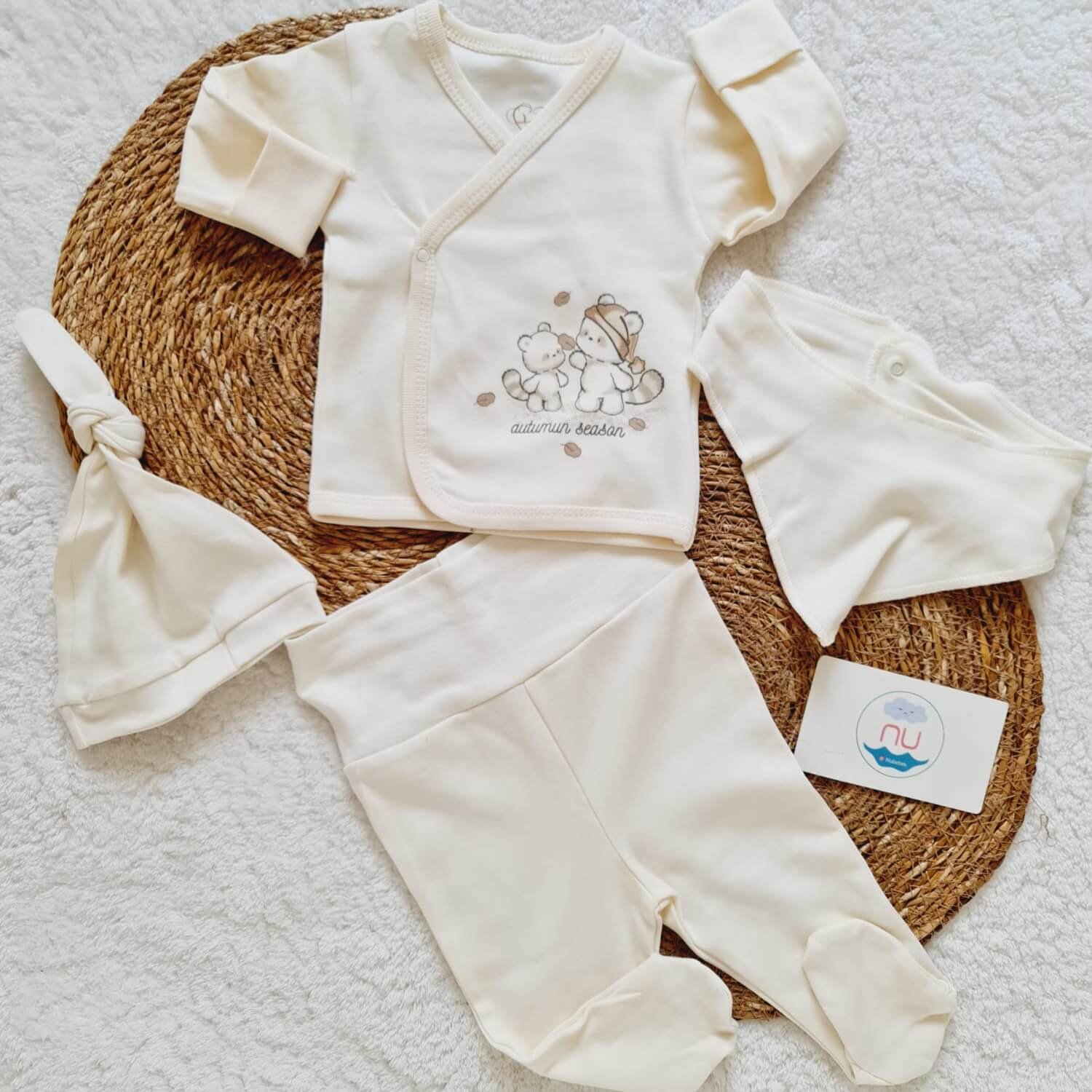 Bebeğinizin hassas cildi için özel olarak tasarlanan autumun hastane çıkış seti, %100 pamuklu yapısı sayesinde yumuşak, nefes alabilen ve konforlu bir kullanım sunar. Minimal ve sade tasarımı ile hem kız hem erkek bebekler için uygundur.