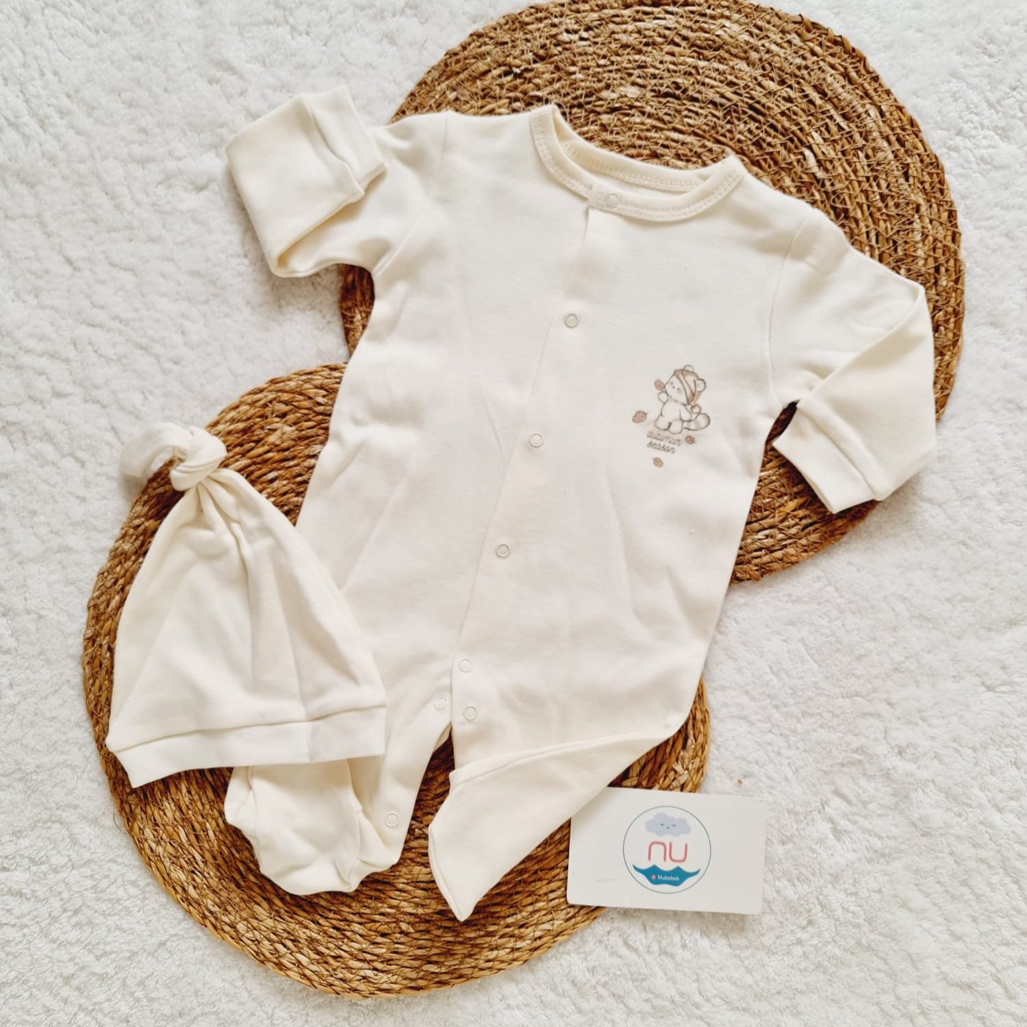 %100 pamuklu tulum ve şapkası