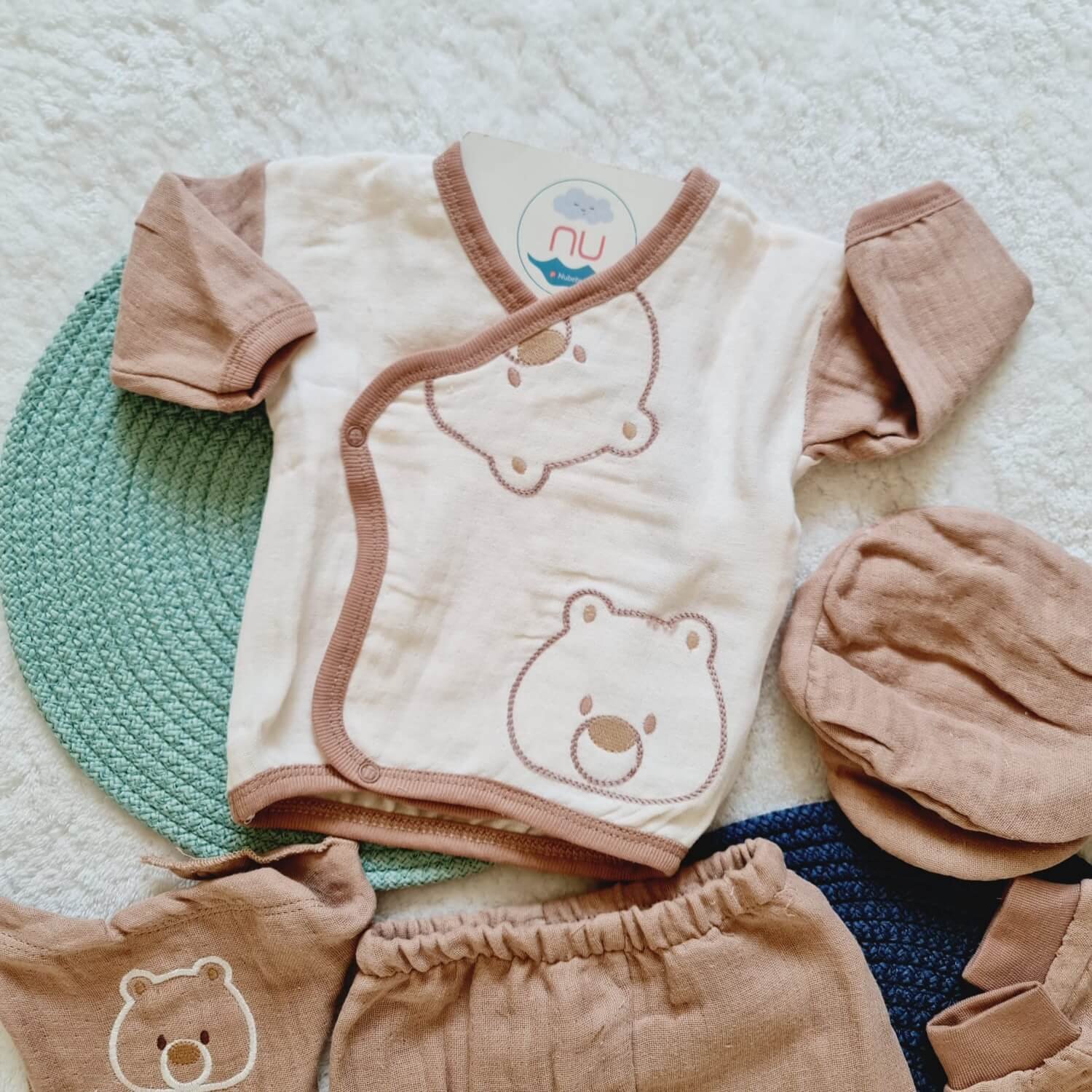 Bebeğinizin dünyaya gözlerini açtığı o ilk anlarda, ona doğanın en yumuşak dokunuşunu sunun. Bears Müslin Hastane Çıkış Seti, %100 pamuklu müslin dokusu ve sevimli ayıcık nakışlarıyla yenidoğan bebekler için hem sağlıklı hem de çok şık bir tercih. Nefes alan kumaşı sayesinde bebeğinizin ısı dengesini korur ve hassas tenini tahriş etmez.