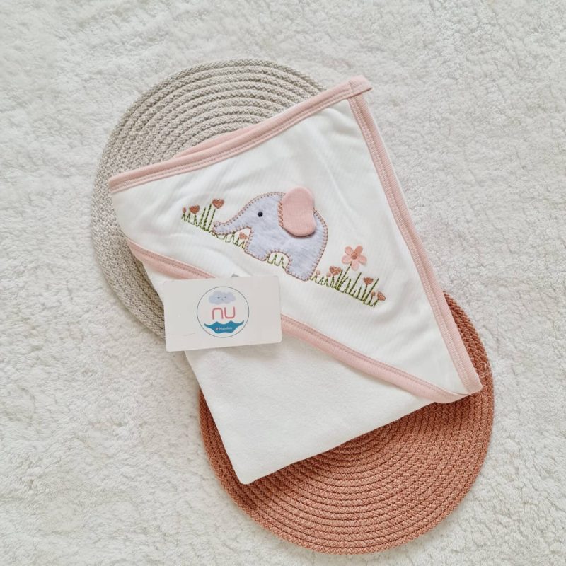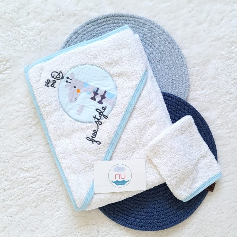 Kundaklı bebek havlusu,bornoz,terlik ve keseden oluşur.