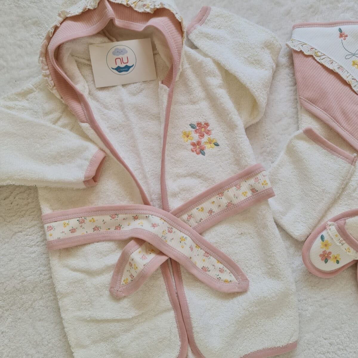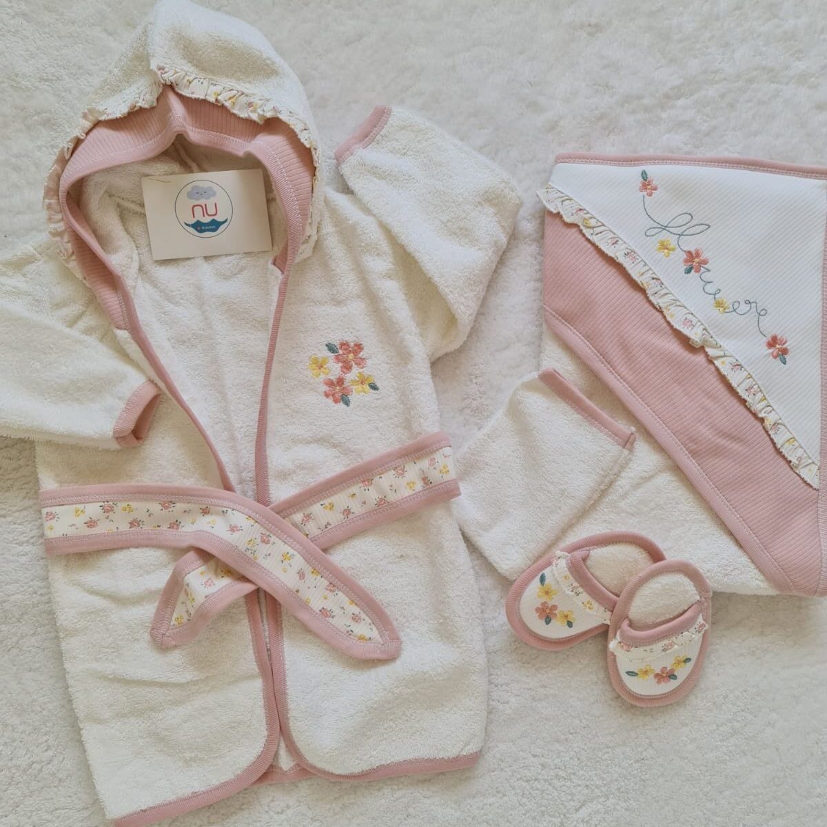 %100 pamuk bornoz,havlu,terlik,keseden oluşan banyo seti