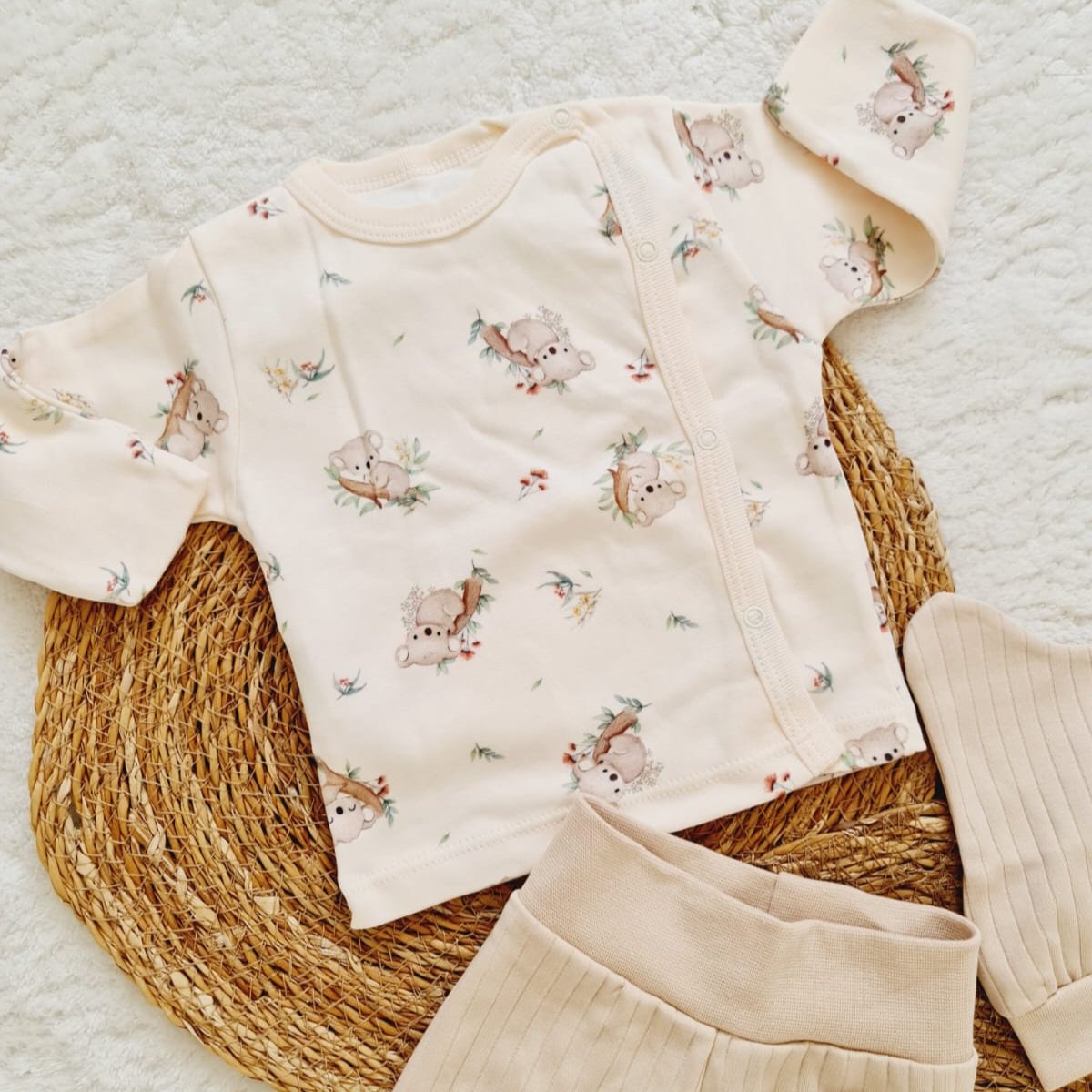 %100 pamuklu 3 parça kendinden eldivenli bebek takımı