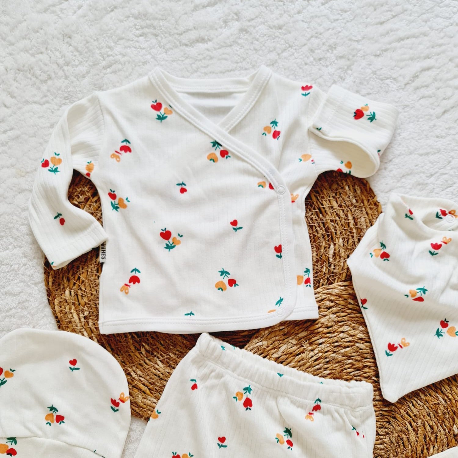 Yenidoğan bebeklerin hassas cildi için özel olarak tasarlanan 5 Parça %100 Pamuklu Hastane Çıkış Seti, doğumdan itibaren güvenle kullanılabilir.Pamuklu kumaşı sayesinde bebeğinizin cildini tahriş etmez, nefes alabilir yapısıyla gün boyu konfor sağlar