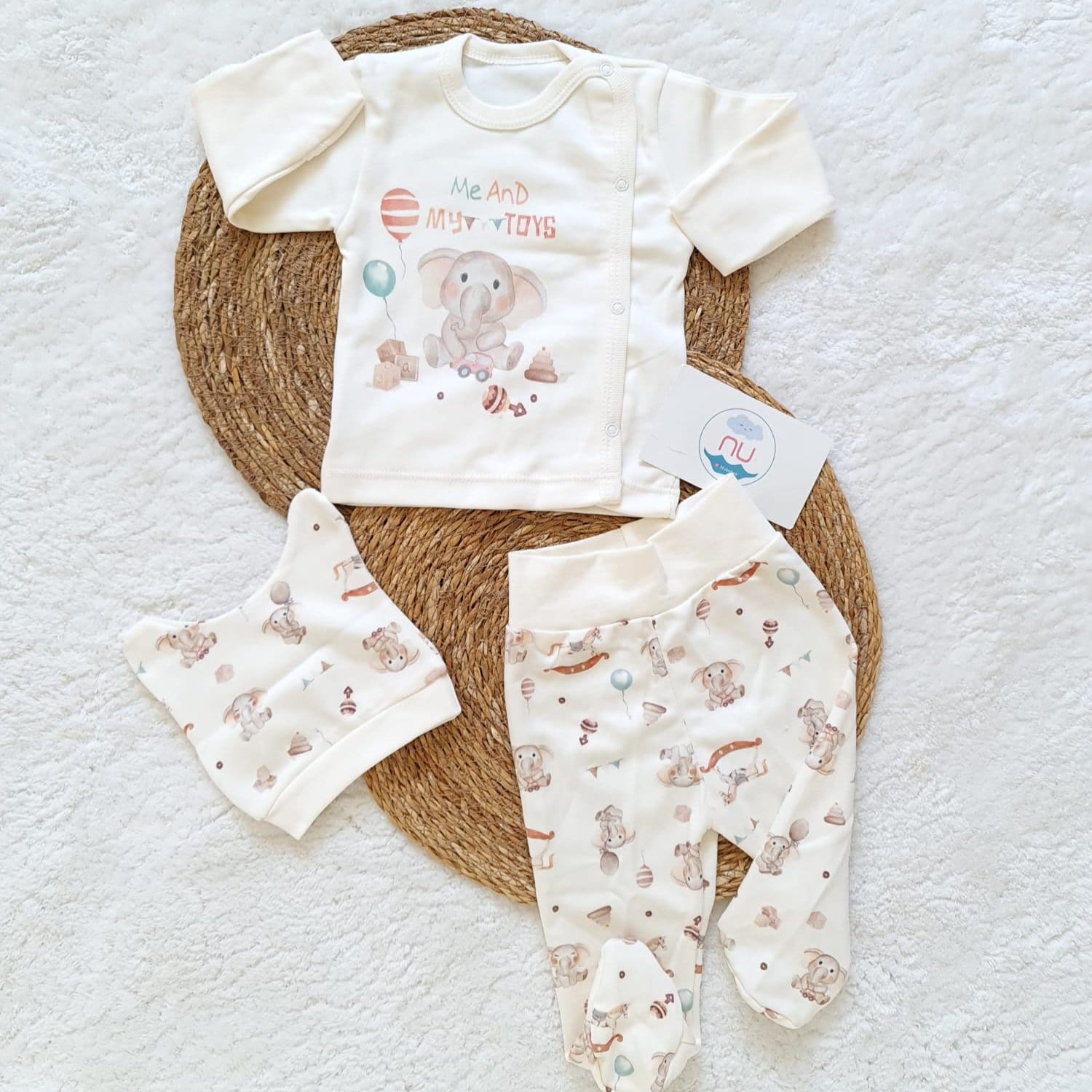 % 100 pamuklu 3 parça kendinden eldivenli 0 3 ay beden uyumlu Hastane Çıkış Seti