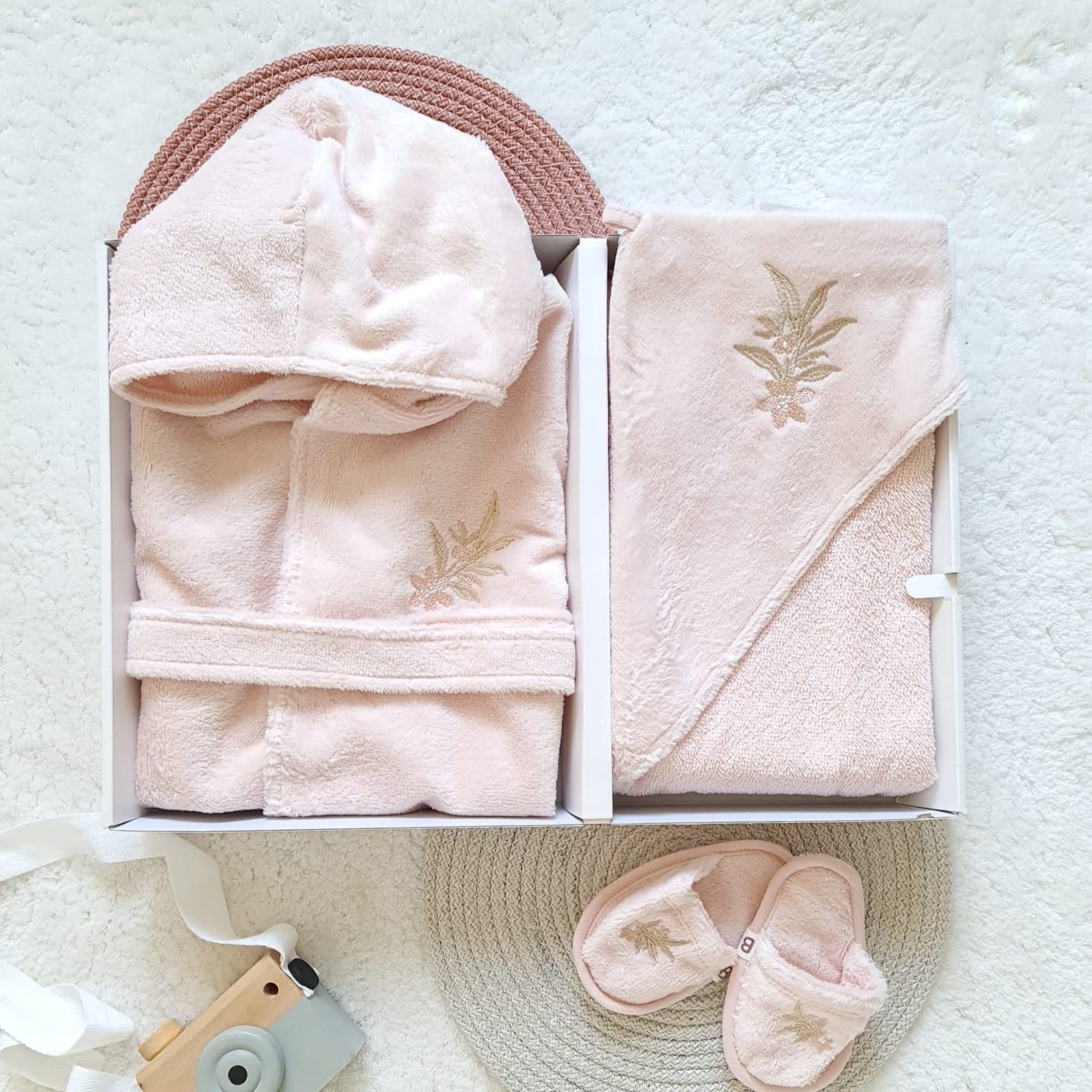 Bornoz, kundak havlu ve terlikten oluşan Banyo setimiz 0 2 yaş arası kullanıma uygundur