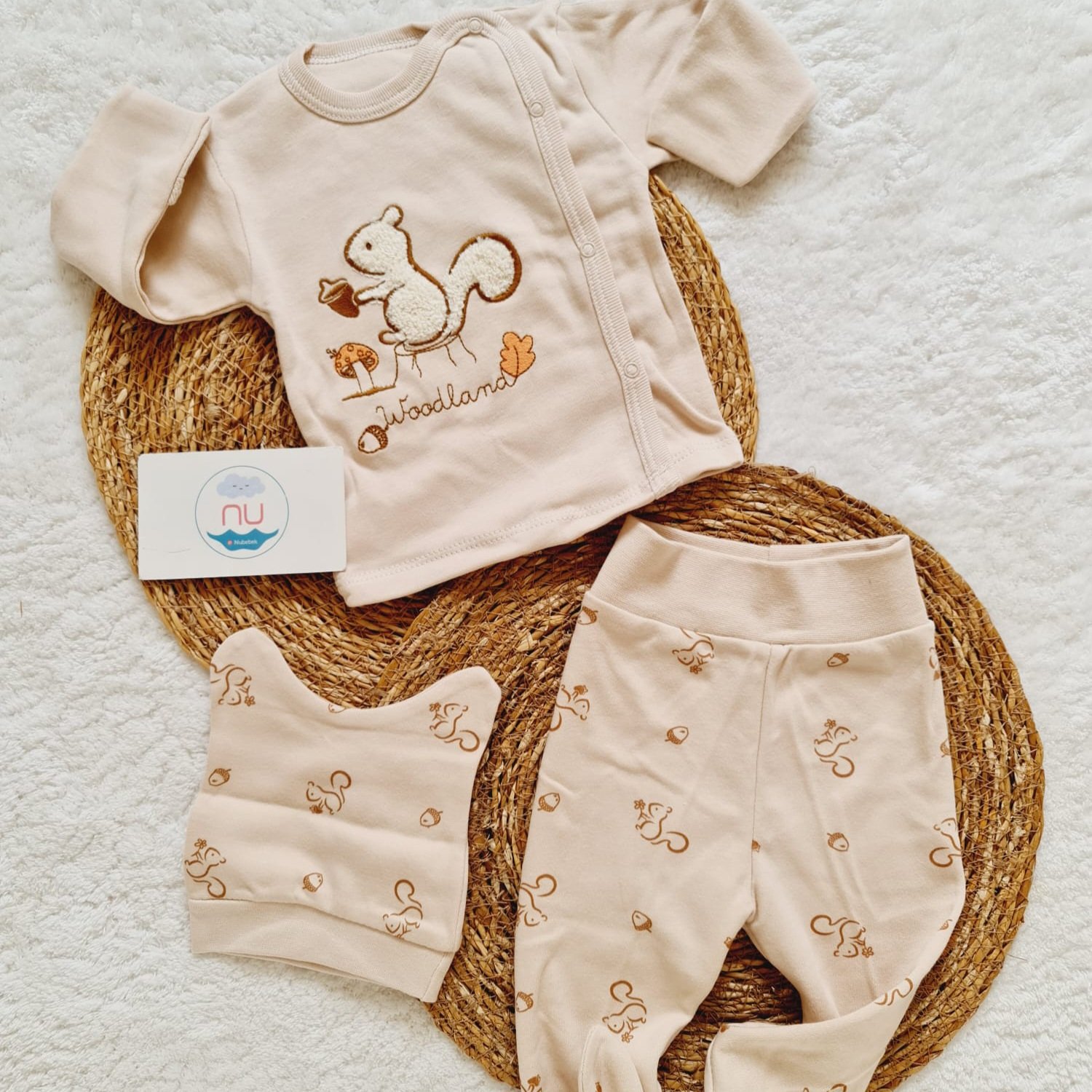 %100 pamuklu 3 parça kendinden eldivenli bebek takimi