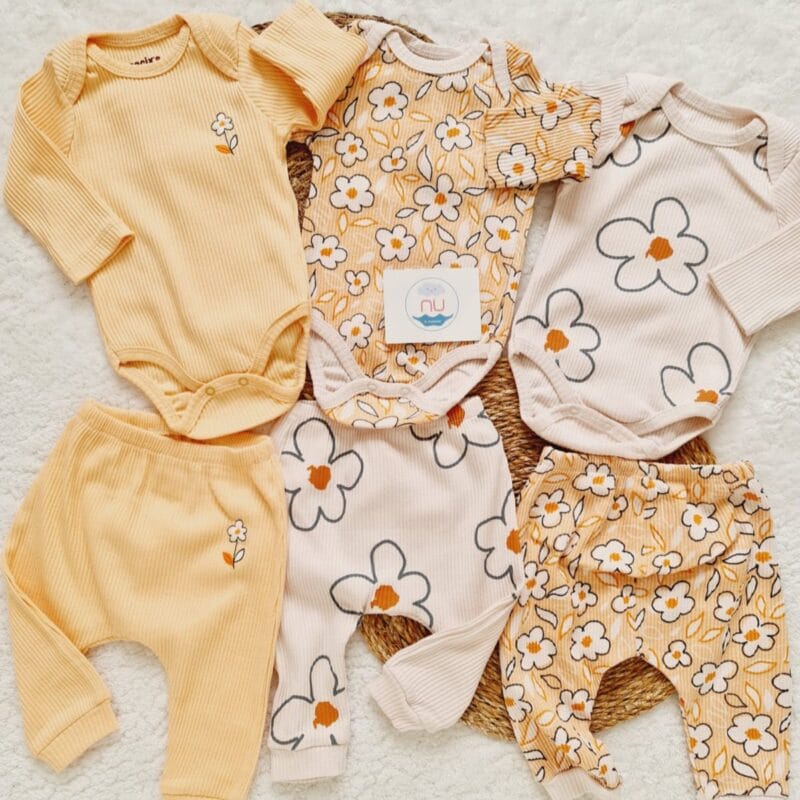 0–3 ay bebekler için uygun olan bu 3 parçalı set, 4 mevsim kullanım için idealdir. Yumuşak dokusu ile gün boyu konfor sağlar.