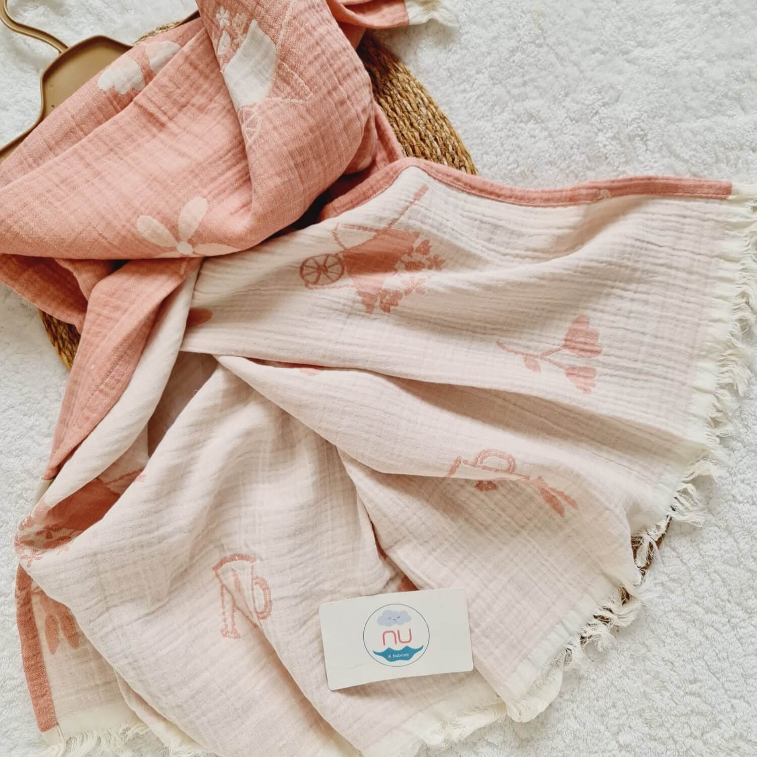 Bebeğinizin uykusuna bahar tazeliği eşlik etsin! Sweet Garden Müslin Battaniye, zarif çiçek desenleri ve el işçiliği hissi veren püskülleriyle hem çok şık hem de çok doğal. %100 pamuklu müslin dokusu, bebeğinizin hassas cildine hak ettiği özeni gösterir.