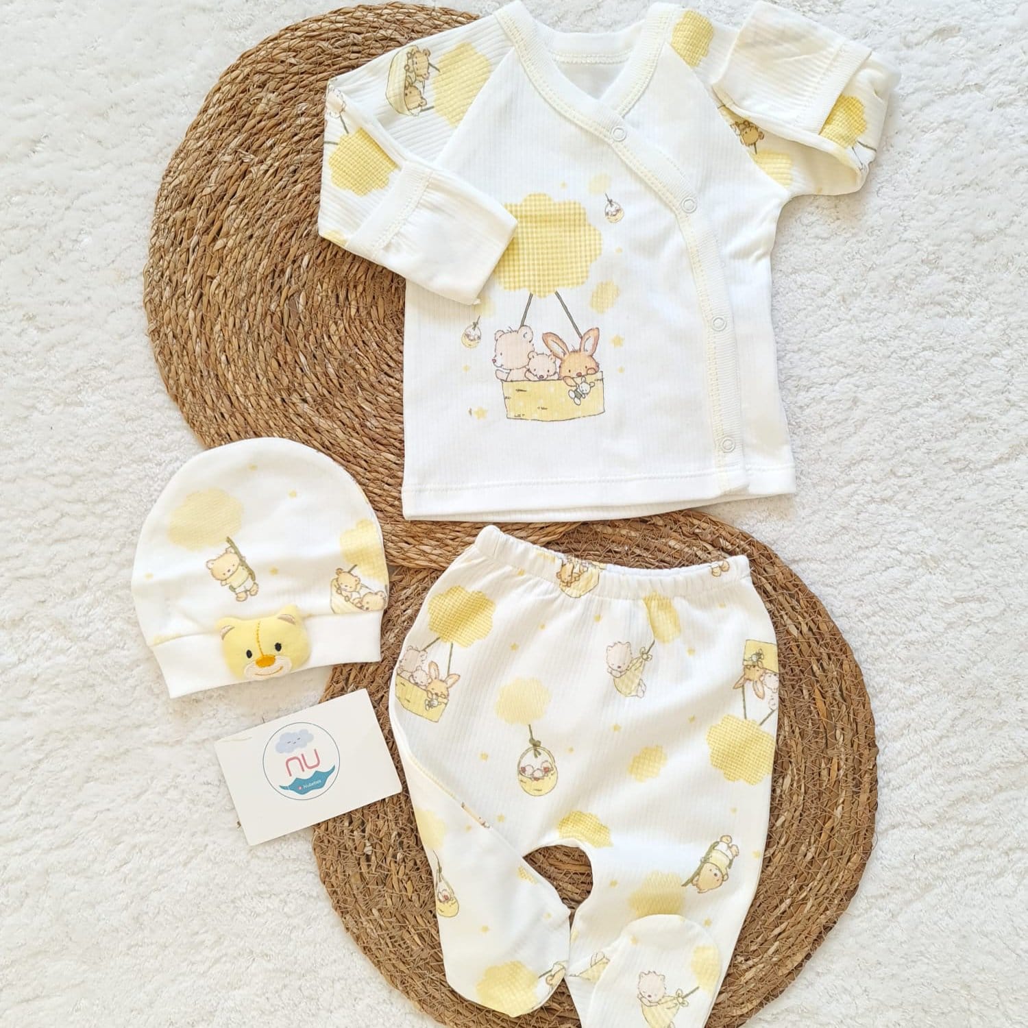 %100 pamuklu kendinden eldivenli 3 parca Hastane Çıkış Seti